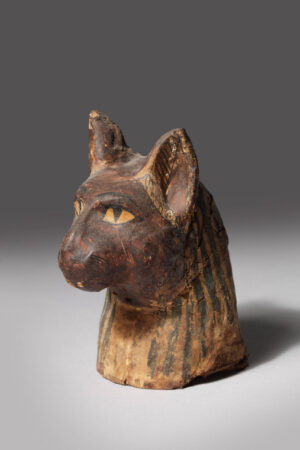 SMALL DARK BROWN CARTONNAGE MUMMY MASK OF A CAT
