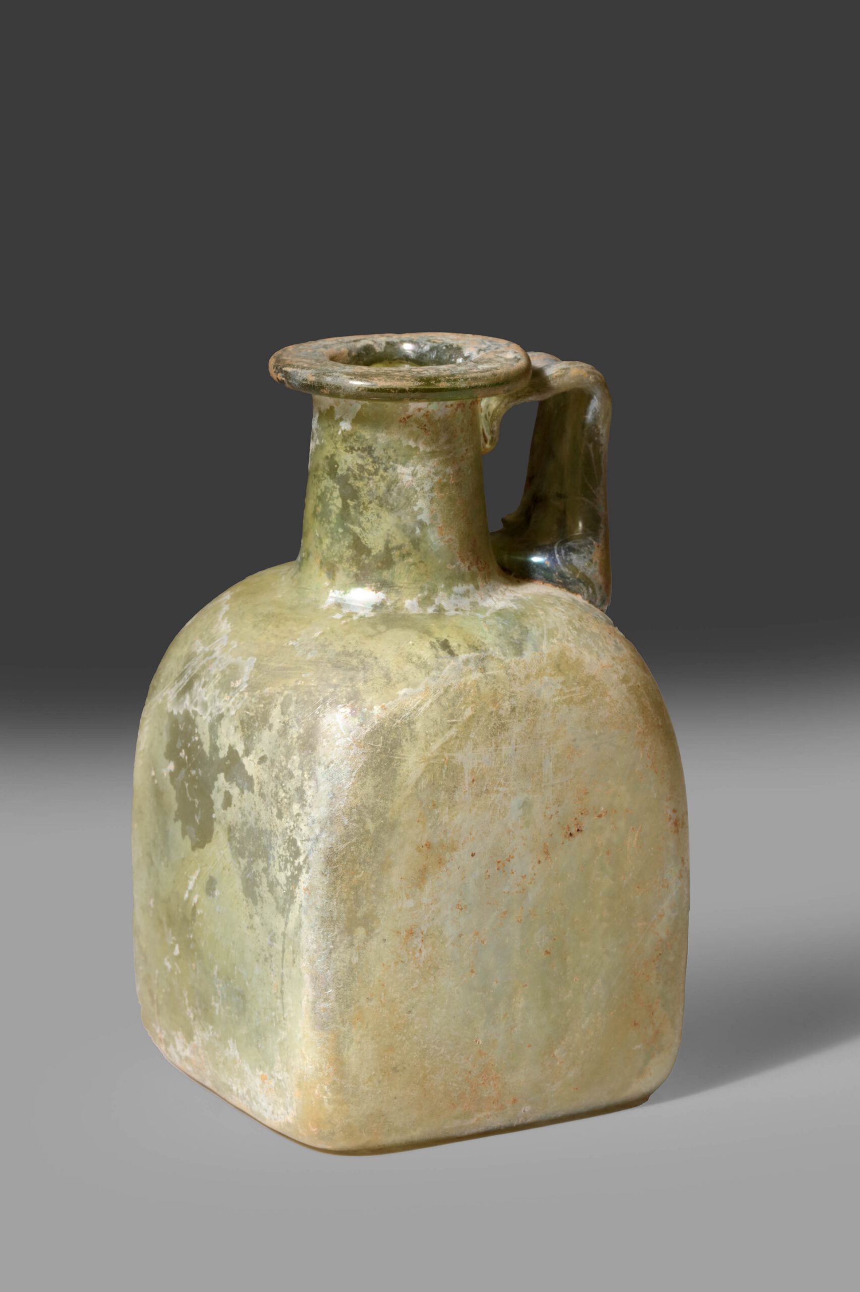 roman square one-handled glass bottle
